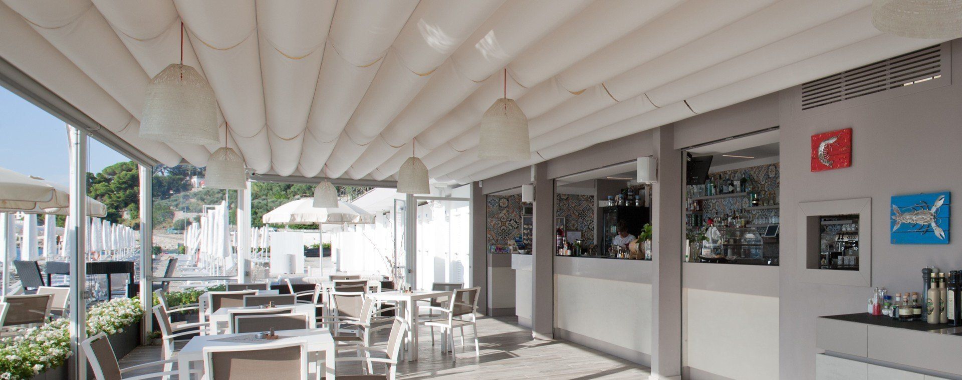 l Bar della spiaggia propone una notevole varietà d'offerta dalla prima colazione agli spuntini con sandwiches, insalatone e carpacci di ogni genere all’aperitivo si possono gustare ottimi vini e spumanti, ma anche champagne, long-drinks e cocktails.